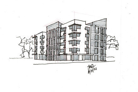 6 stories total; 5 levels of Type 3A construction over 1 grade-level Type 1A level. Common open space on the 6th floor roof level.
